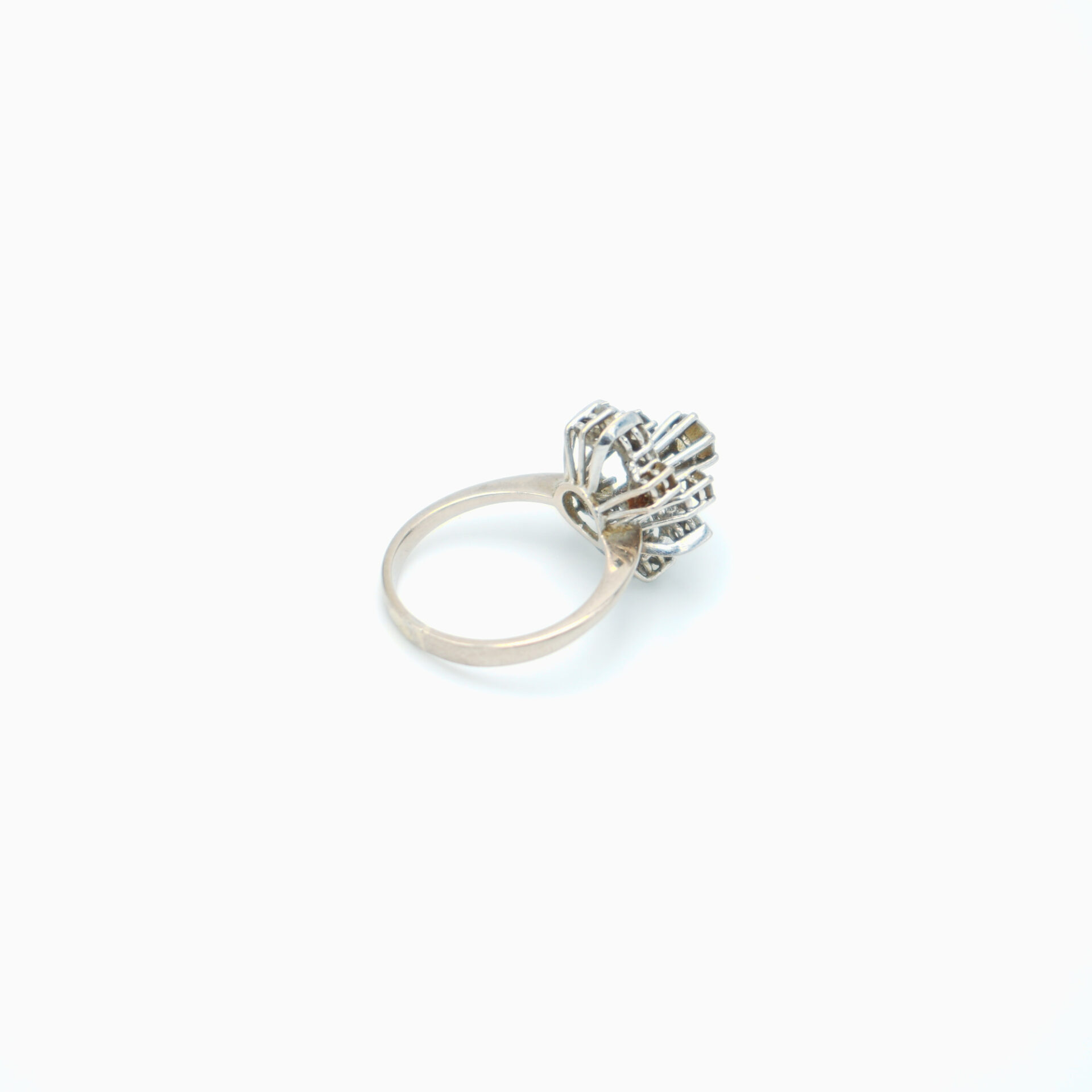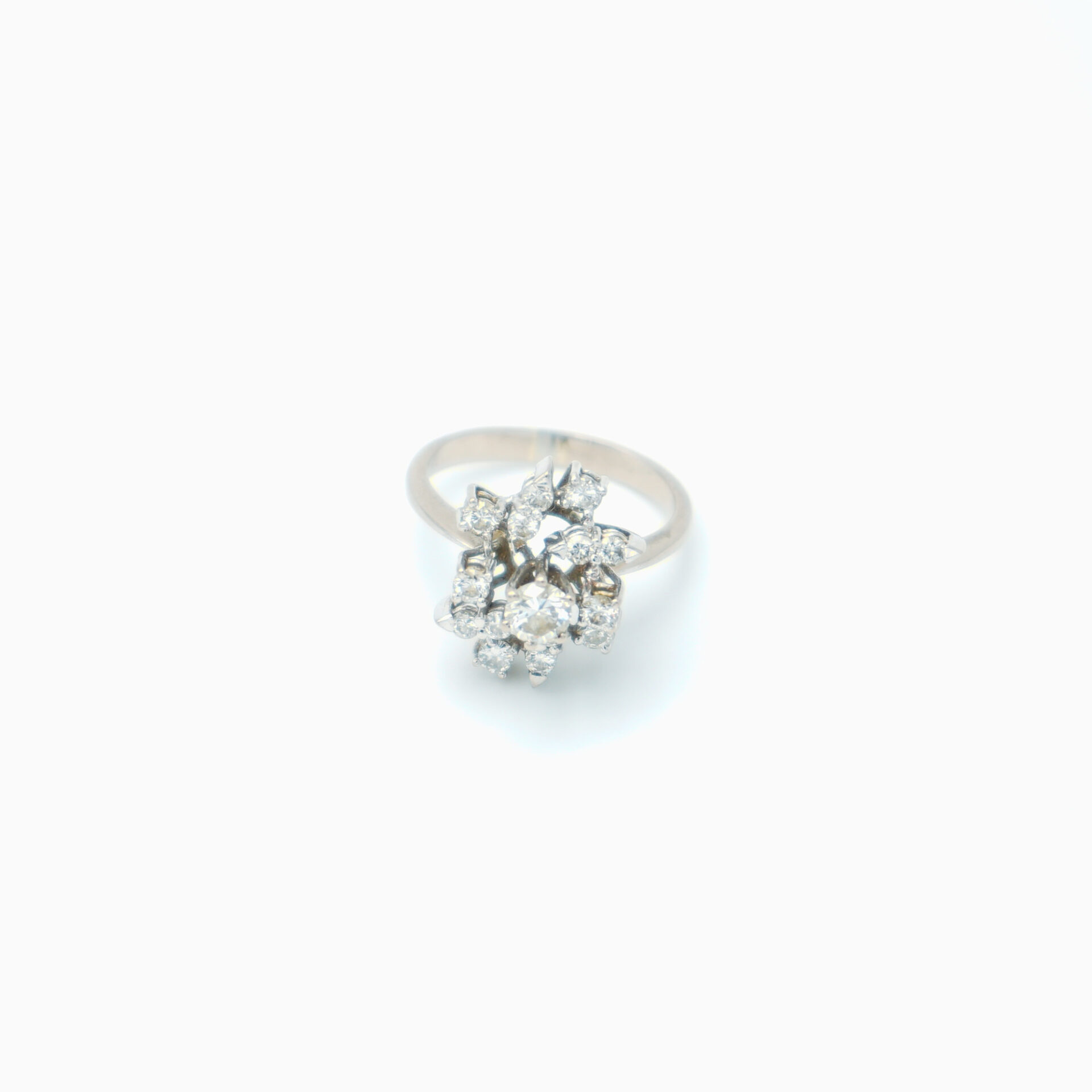 Anillo de los años 50 montado en oro blanco de 18k con diamante central de 0,40 cts y 14 diamantes montados en garras a diferentes alturas.