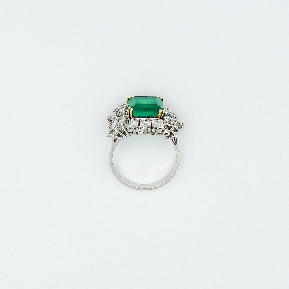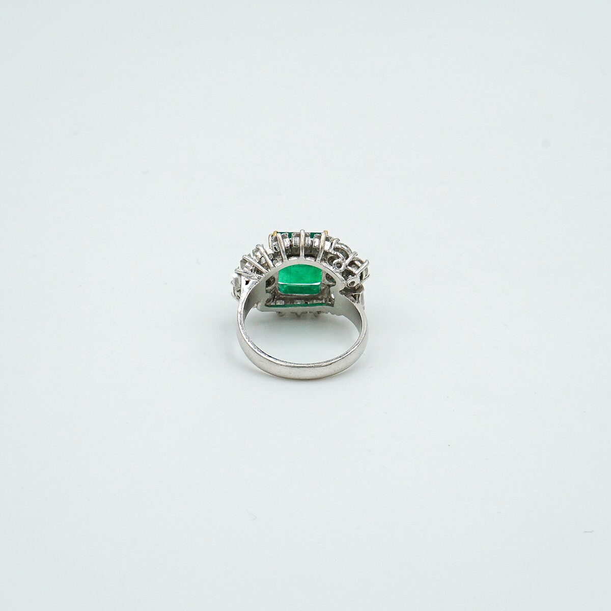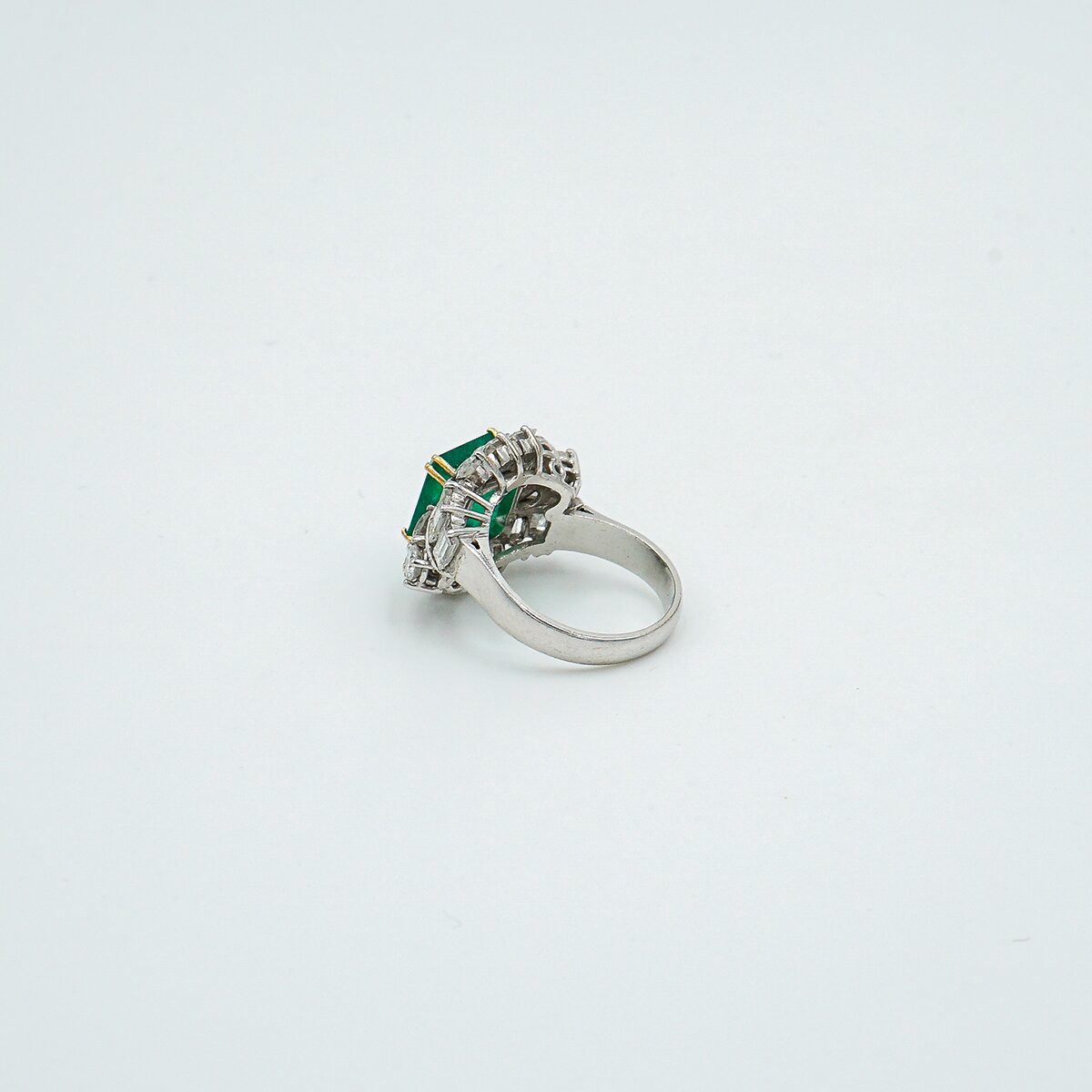 Revive el glamour de los años 50 con este anillo emblemático: una esmeralda colombiana central de 4,20 cts rodeada por una elegante orla de diamantes talla brillante y baguette. Cada piedra suma una sinfonía de luz y color verde intenso, capturando la sofisticación atemporal en un diseño que resuena tanto con coleccionistas como con amantes del estilo vintage.