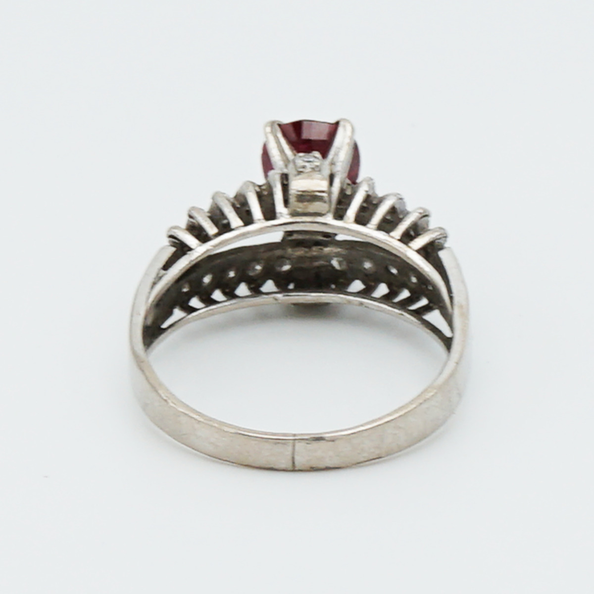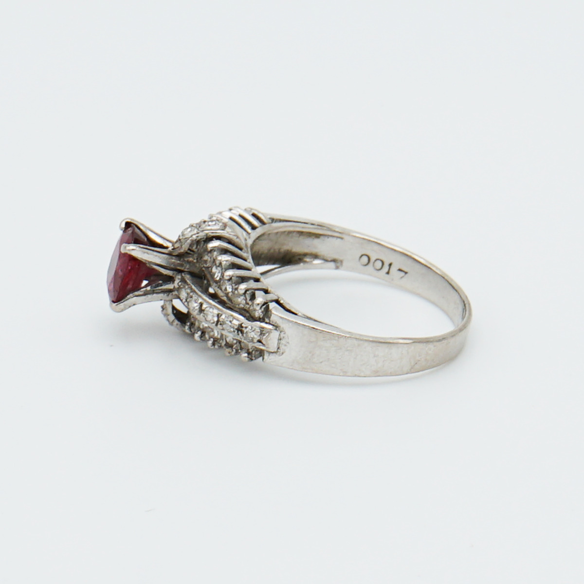 Anillo artdeco de los años 20 con rubi central de 1.15 cts de origen Birmania y pave de diamantes talla brillante antigua.