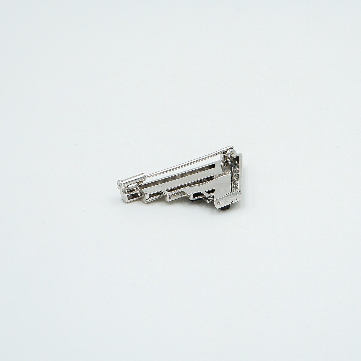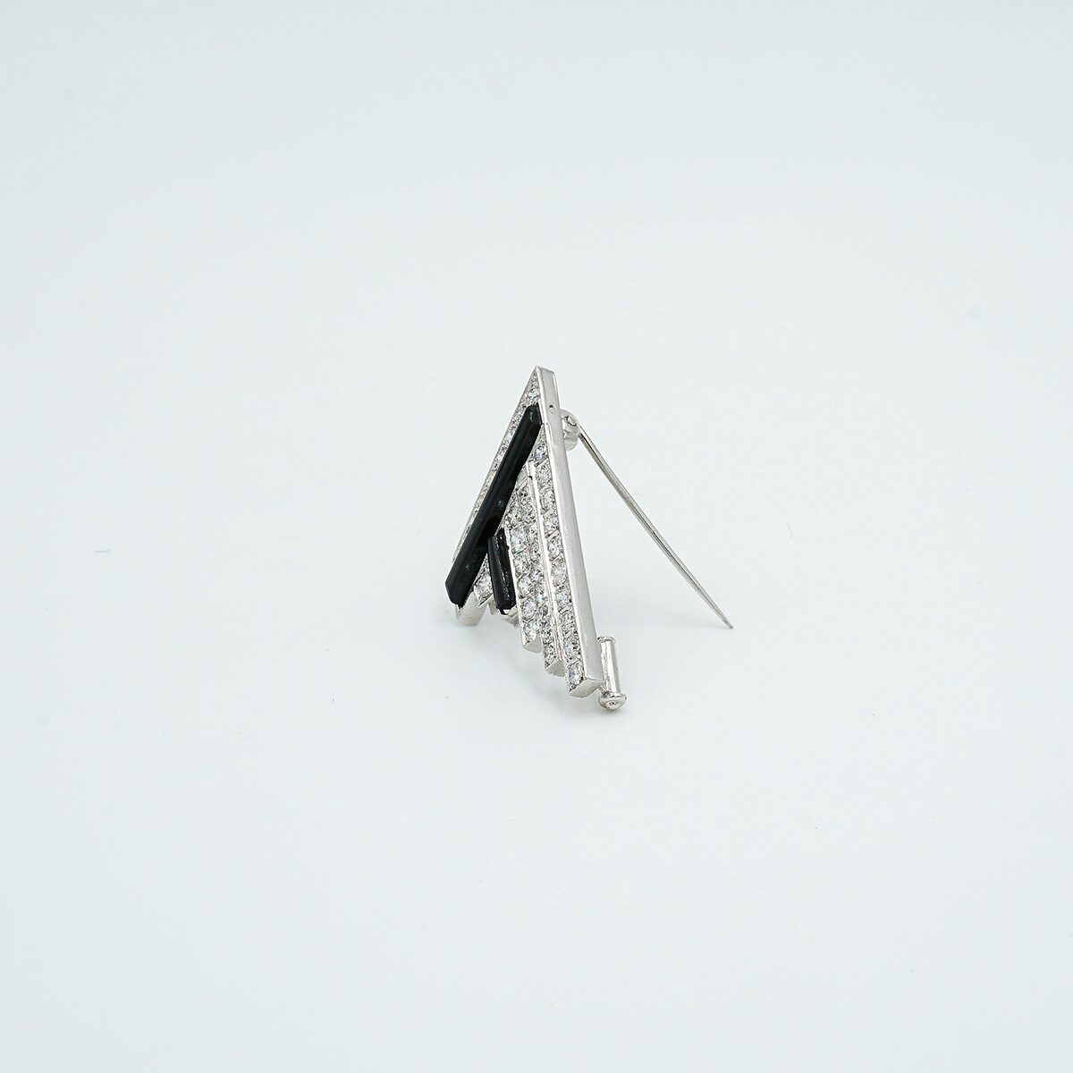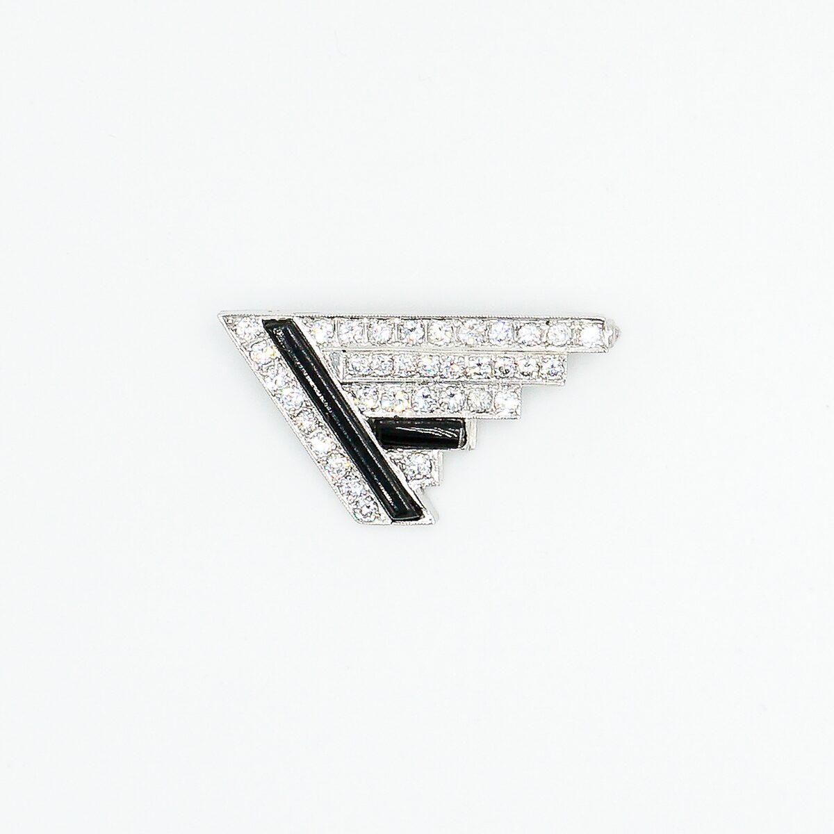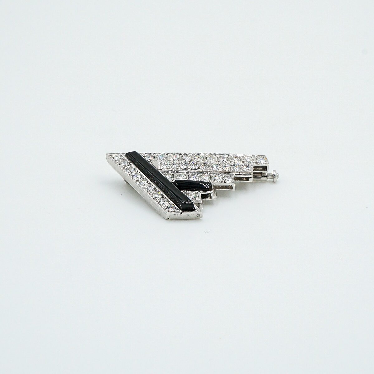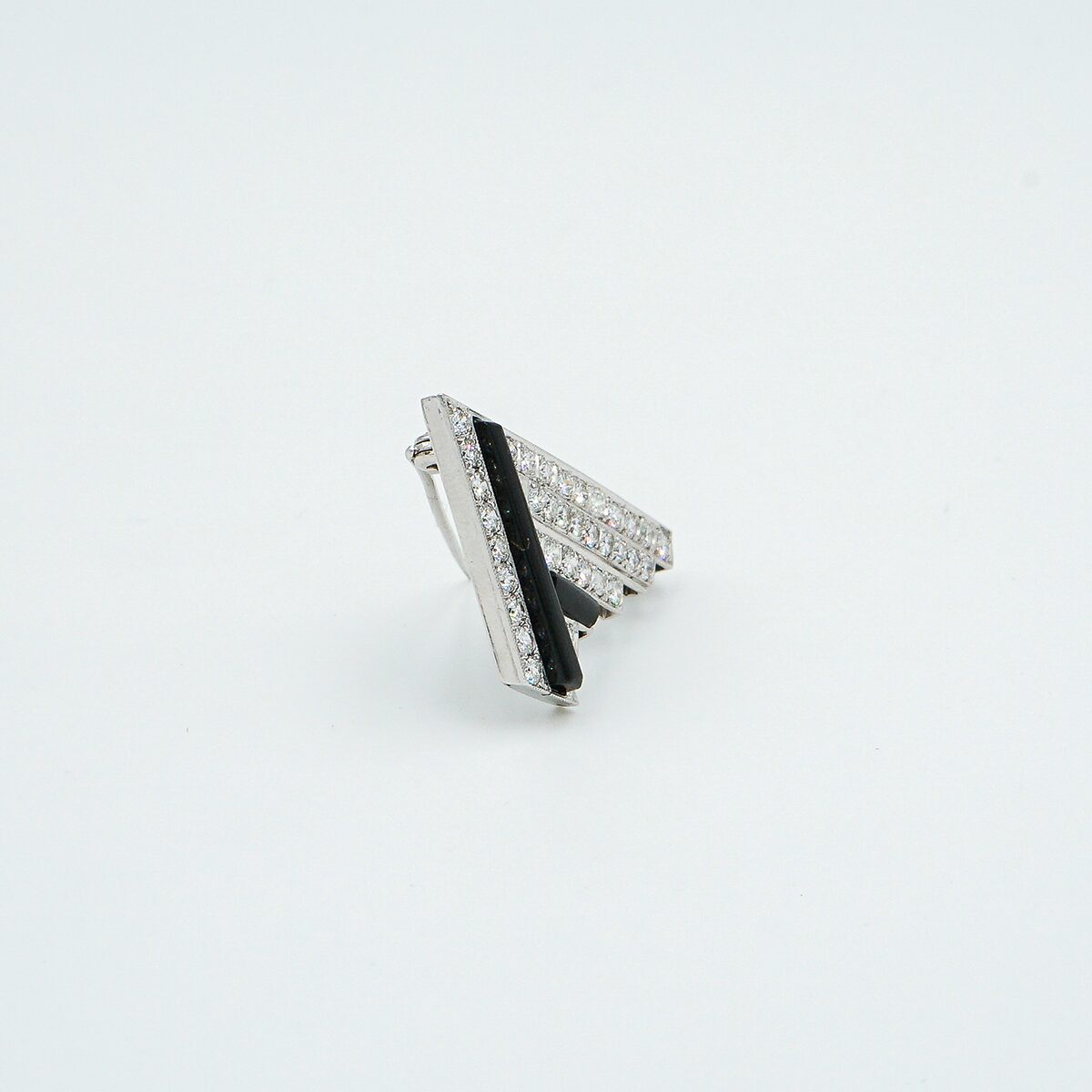 Broche ART Déco de los años 30 montado en platino con diamantes talla brillante y onix.