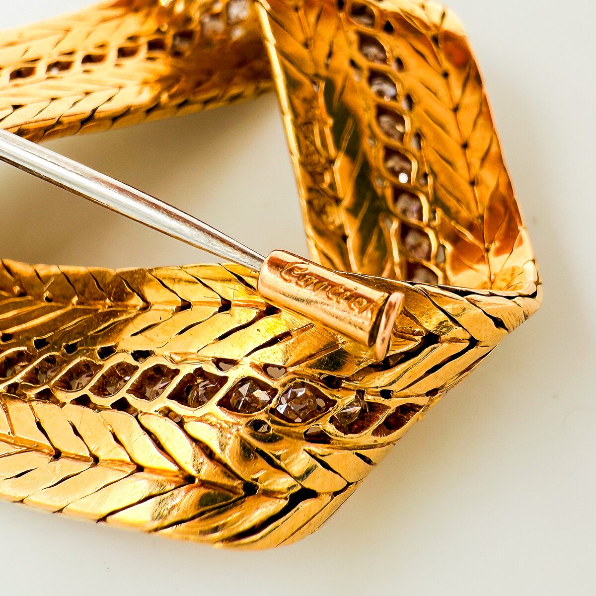 Precioso broche Cartier London de los años 30 montado en oro amarillo de 18k con diamantes talla brillante.