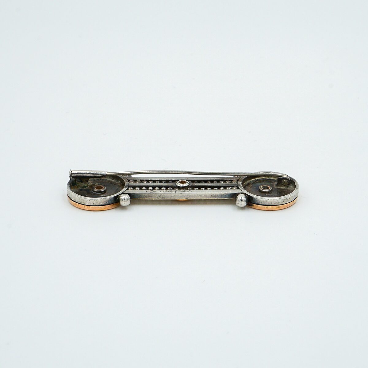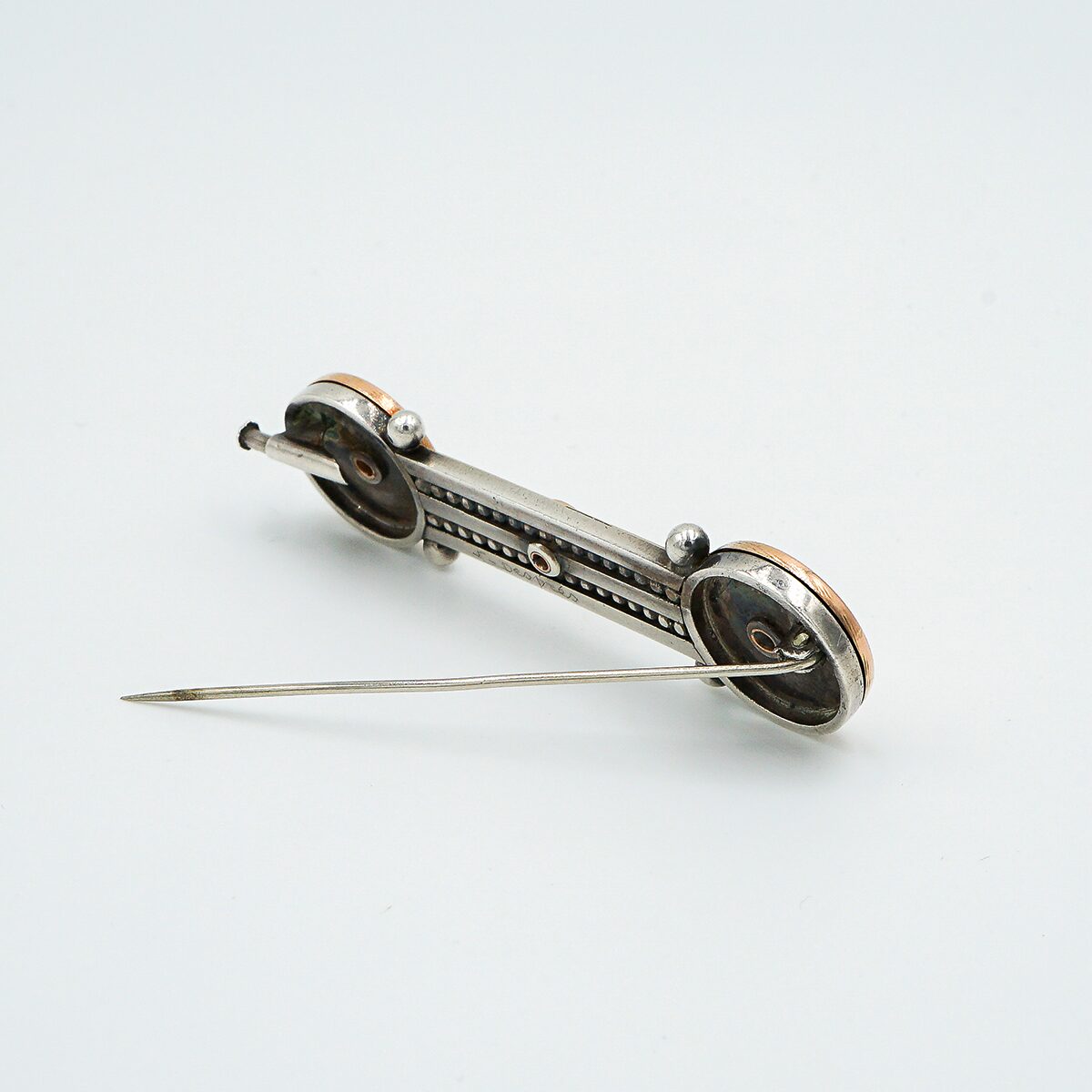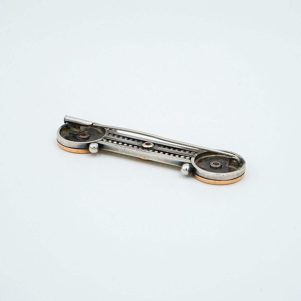 Precioso Broche firmado y numerado Jean Despres de los años 30 montado en oro de 18k y plata.