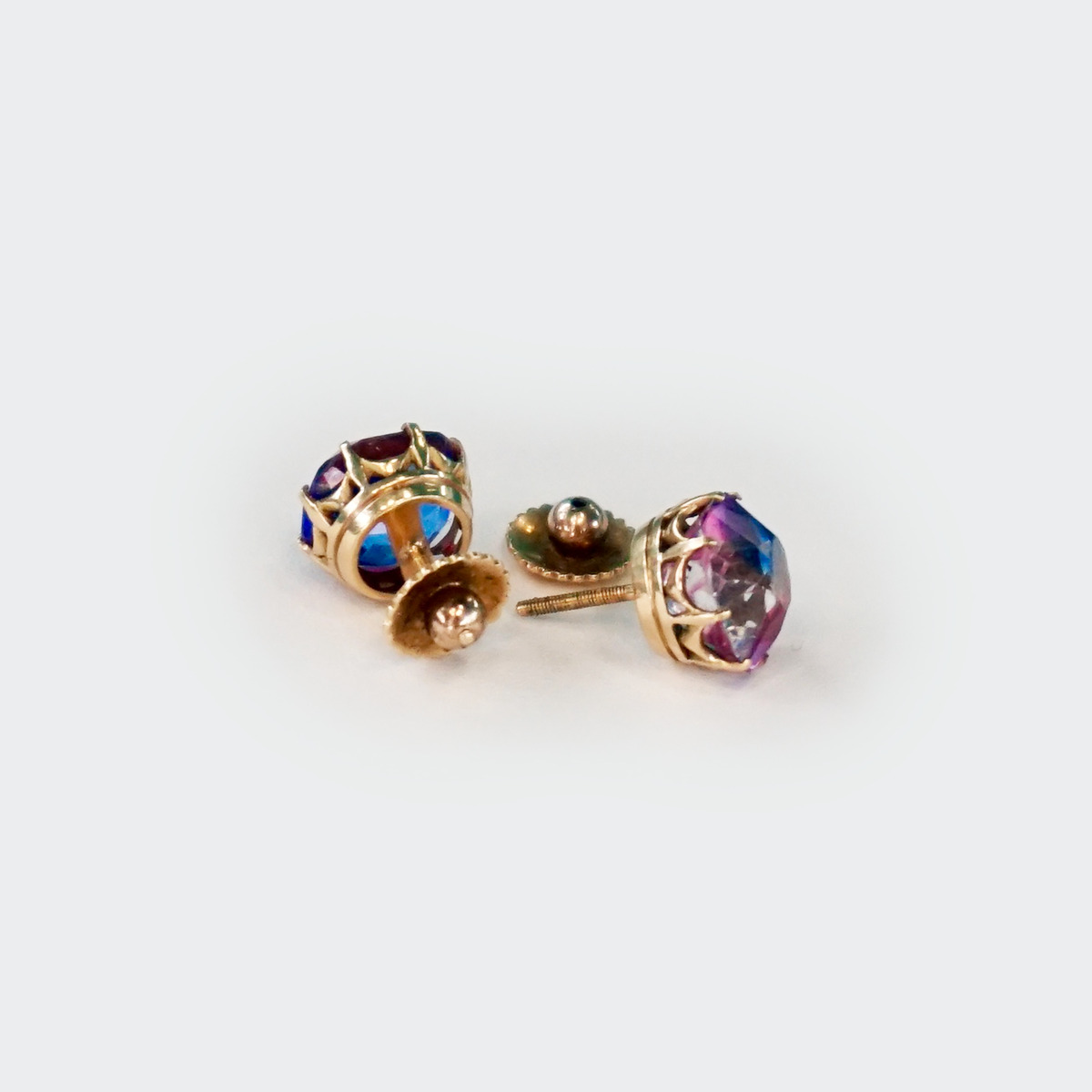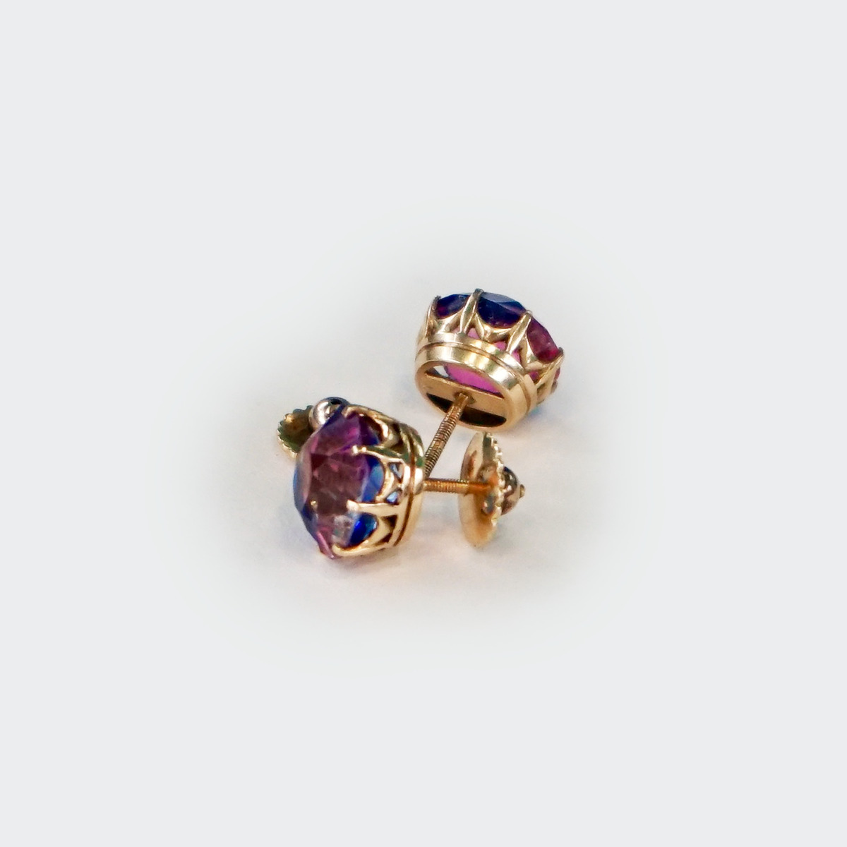 Pendientes de los años 20 con amatistas en tres colores montados en oro de 18k.