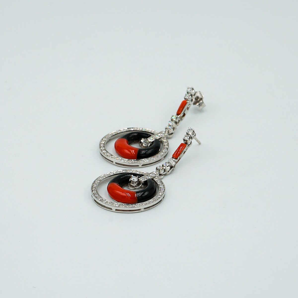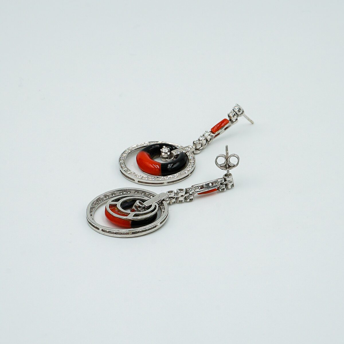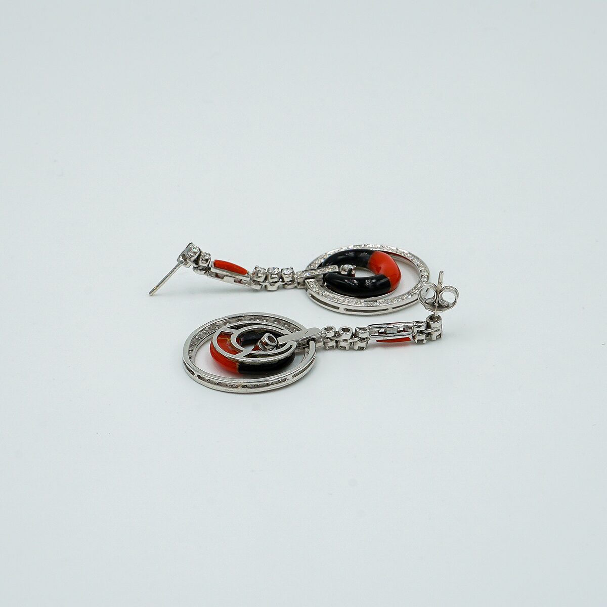 Pendientes artdeco con diamantes talla brillante ( 2,40 cts ) coral y onix.