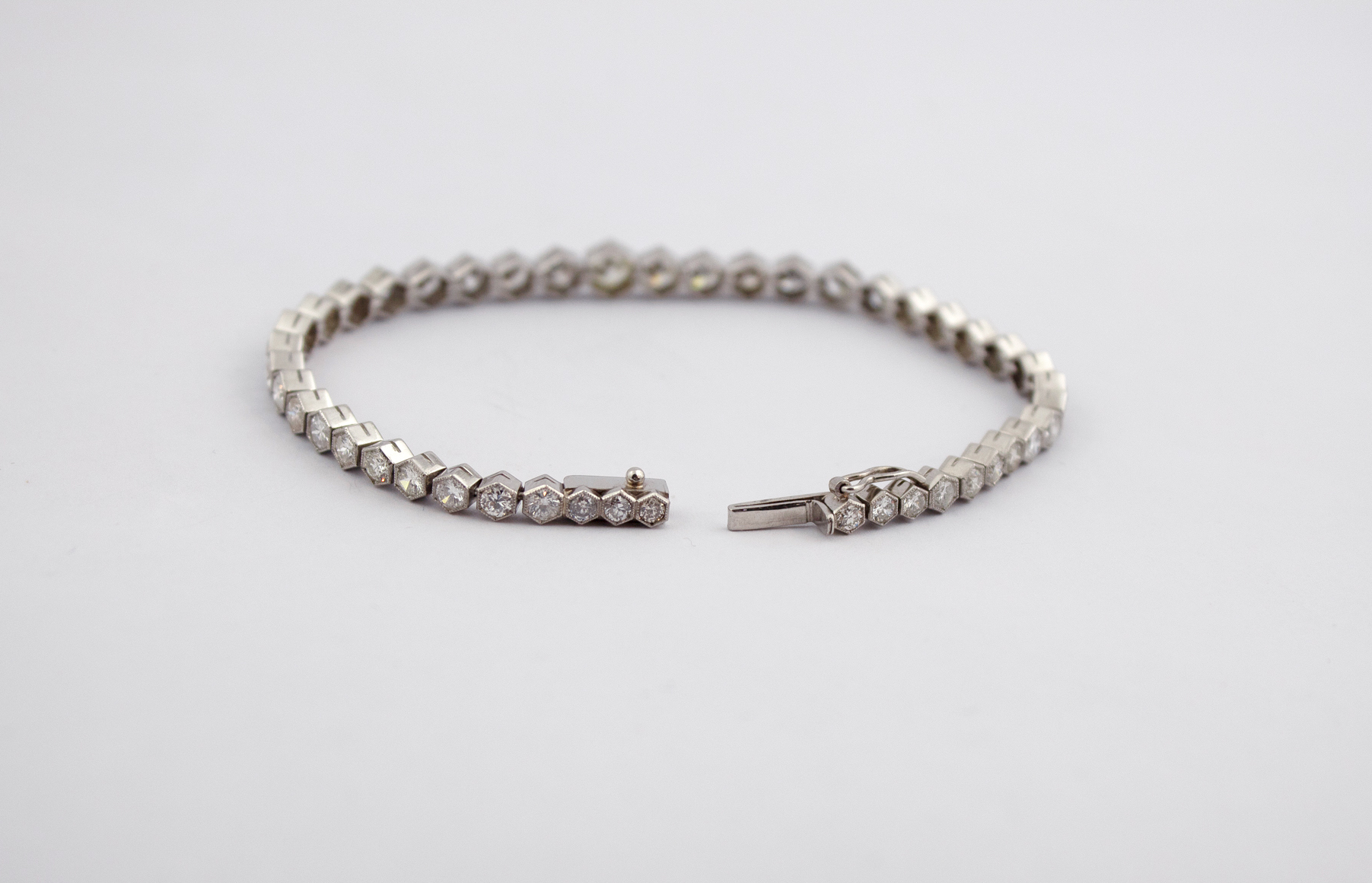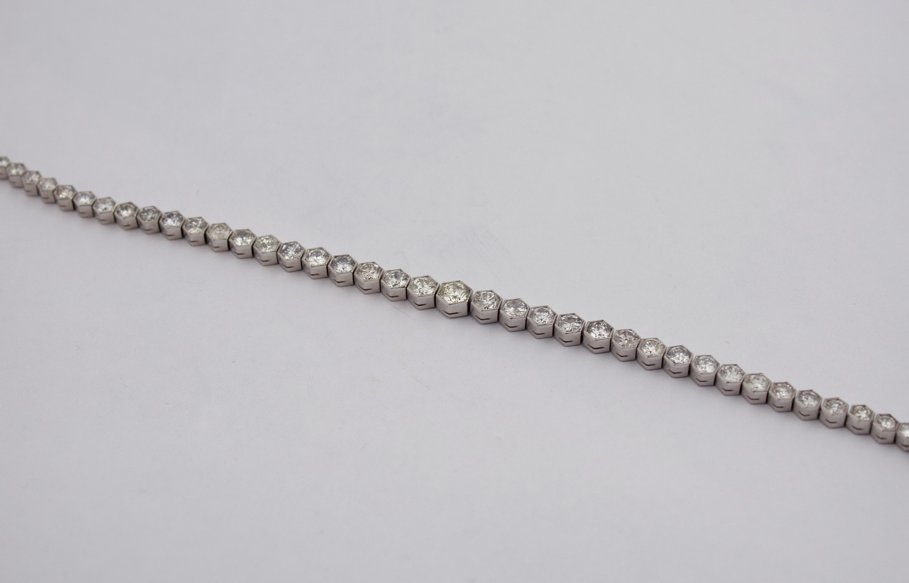 Pulsera art déco montada en platino con diamantes talla brillantes en degradé desde 0.50 cts a 0.08 cts