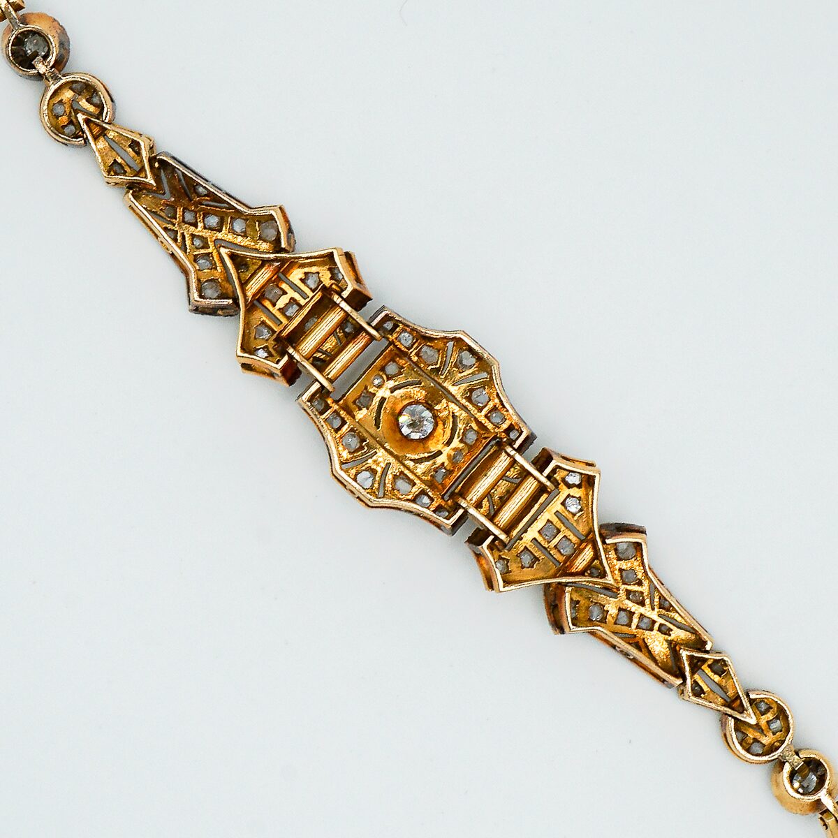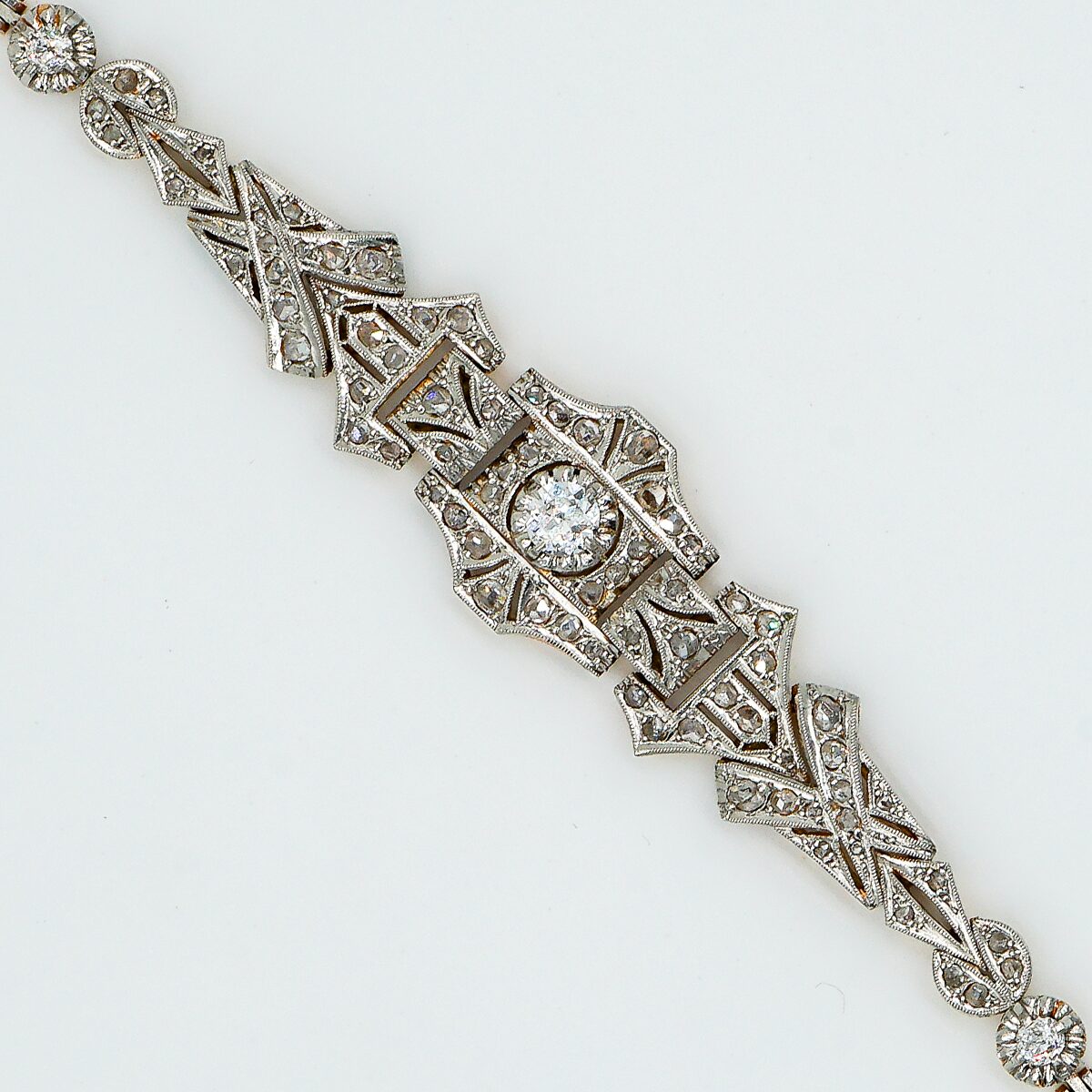 Pulsera ART Déco España 1920 montada en oro de 18k y vistas de platino con diamantes talla brillante antigua.